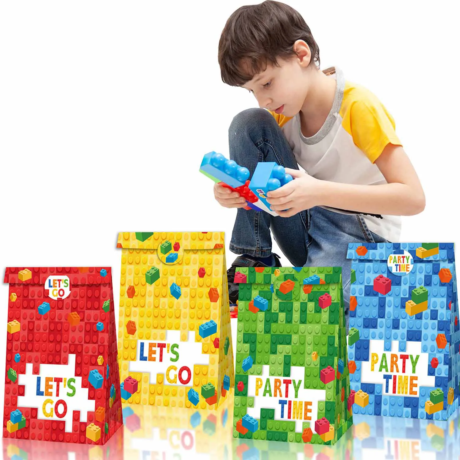 JIELEN 12 шт. Подарочные пакеты строительного блока, Тематические бумажные пакеты строительного блока, Хозяйственные сумки, Мешки Kraft
