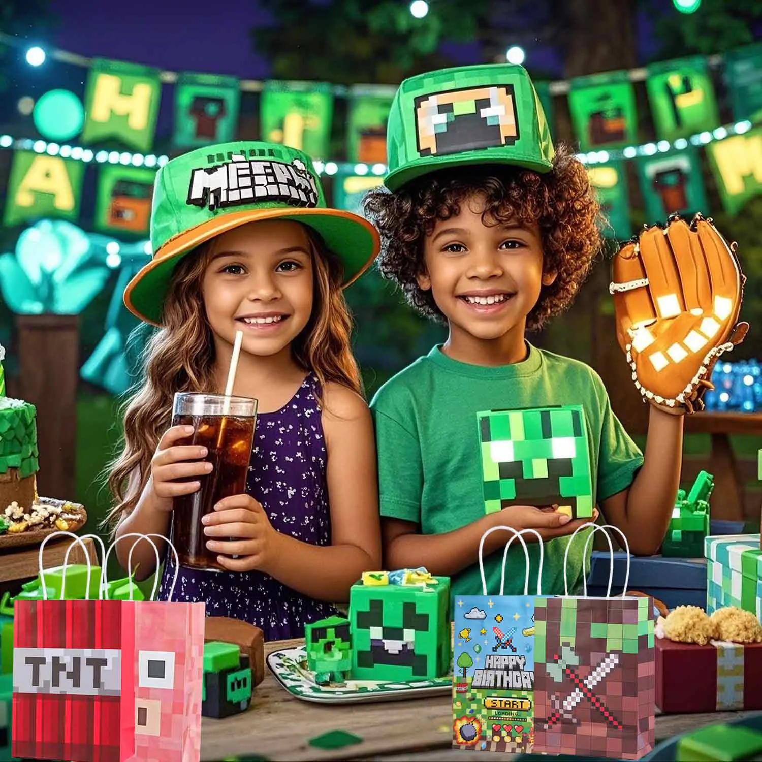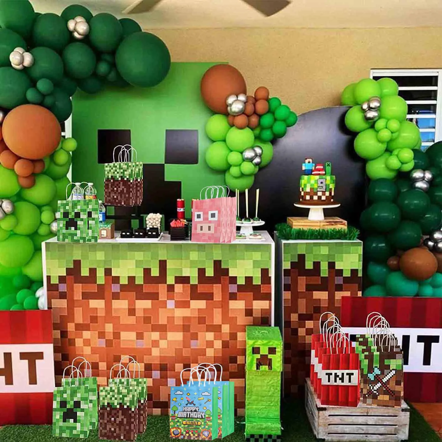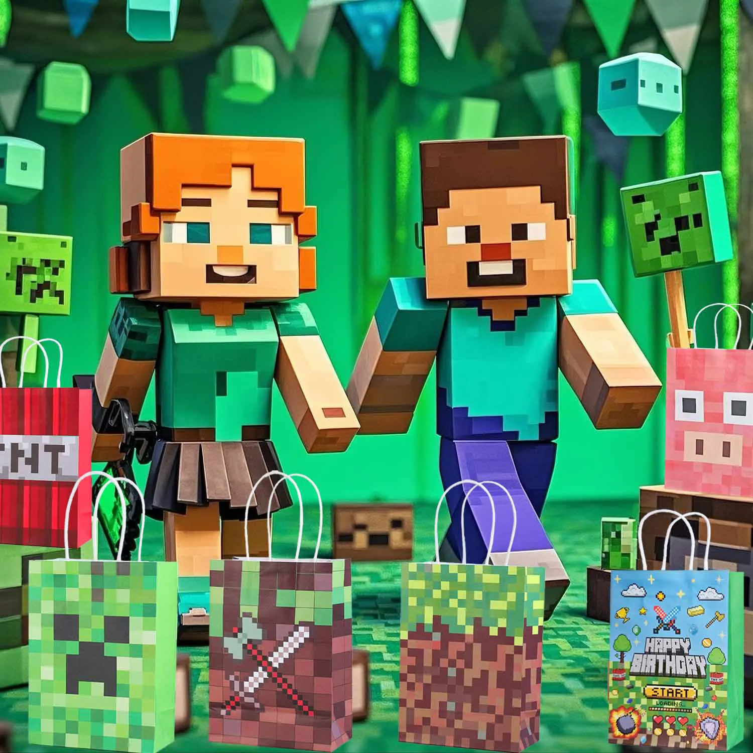 Идеальный выбор для подарочных пакетов: будь то вечеринки по случаю дня рождения, вечеринки в стиле охоты за сокровищами, ретро-игровые вечеринки или праздничные торжества, этот креативный бумажный пакет с элементами майнера является идеальным выбором для упаковки подарков.
