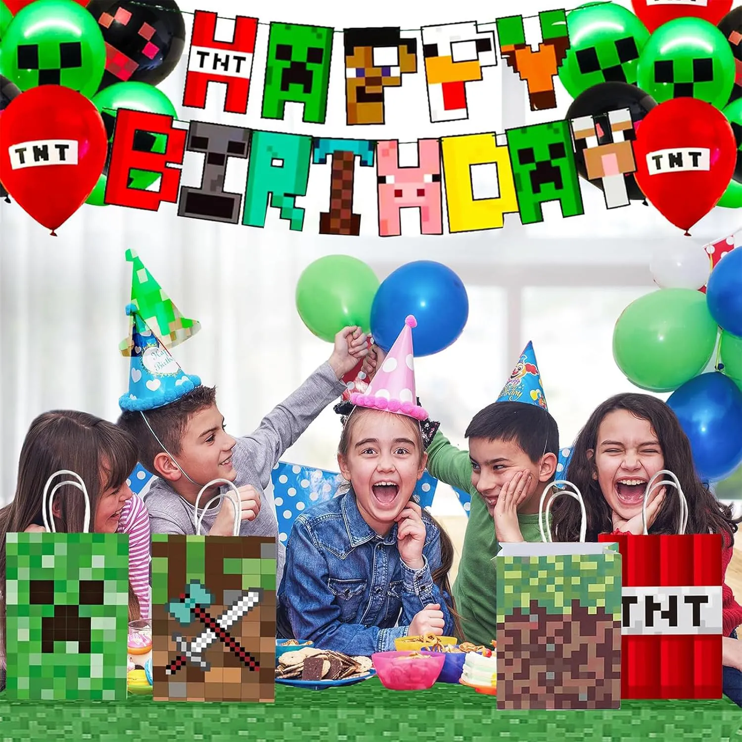 JIELEN 24 PCS Pixel Gift Paper Bags, Элементы игры Подарочные пакеты на день рождения, Ручной бумажный мешок