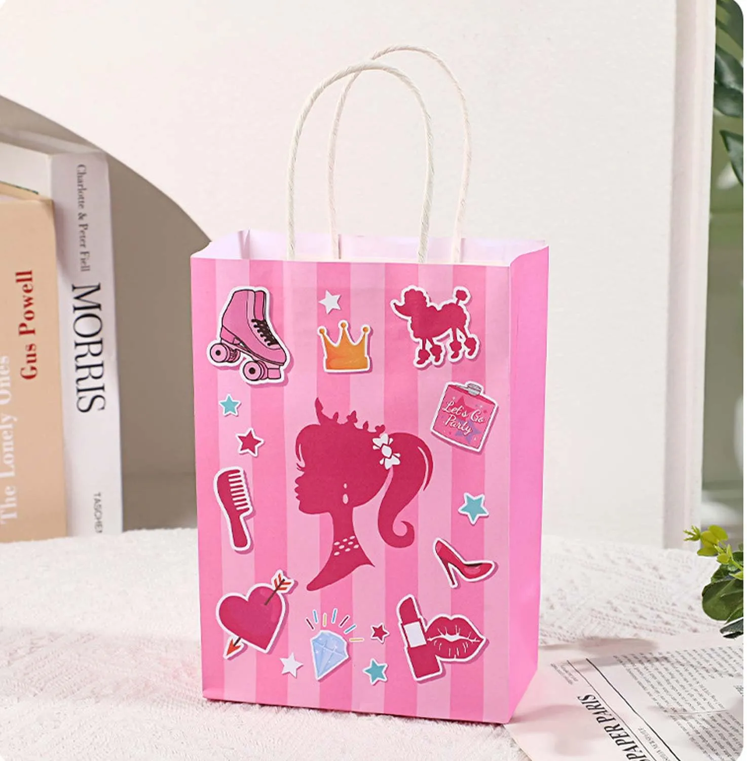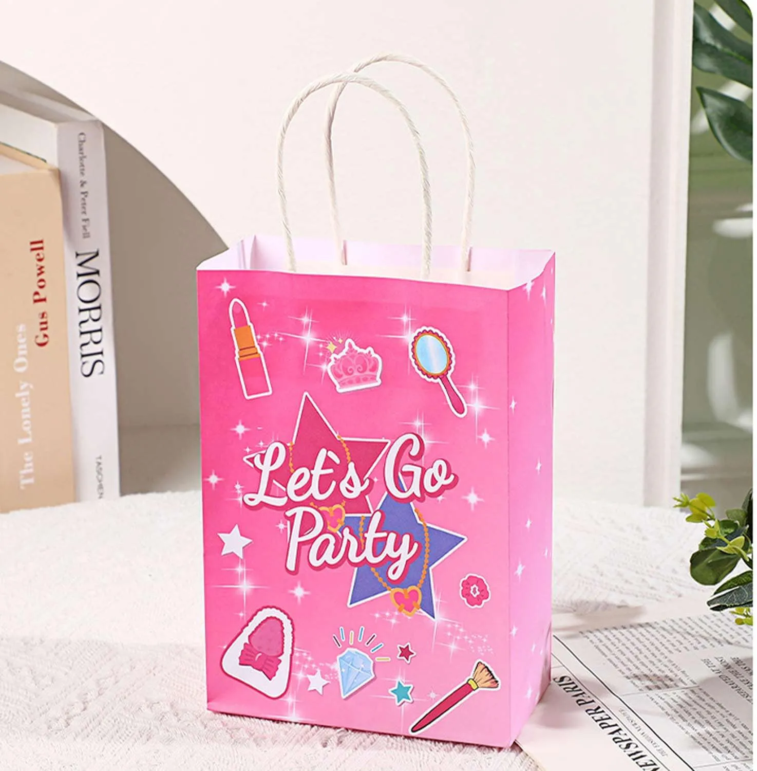 JIELEN 16 PCS Розовые подарочные пакеты для девочек, подарочные пакеты Princess, розовые пакеты Favors, подарочные бумажные пакеты, сумки для покупок, крафт-бумажные сумки