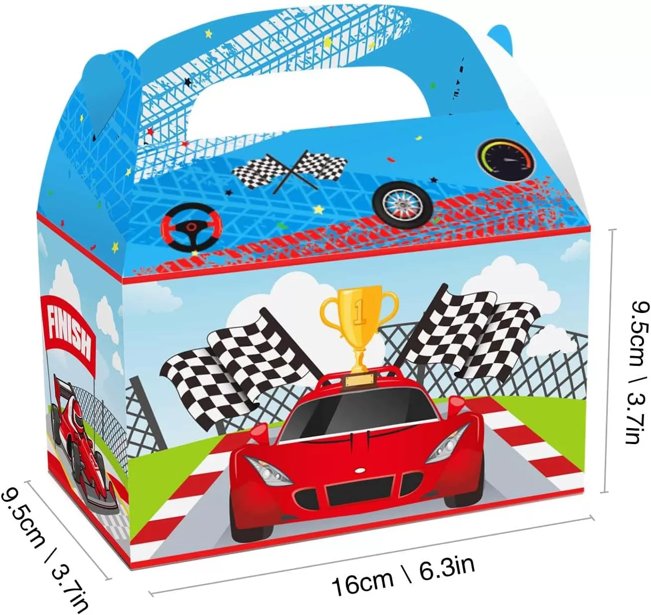 Размеры упаковки: вы получите пакет поставок для вечеринок гоночных автомобилей из 12 подарочных коробок автомобильной темы в 4 моделях, по 3 штуки в каждом стиле. Каждая бумажная подарочная коробка имеет размеры 6,3 x 3,9 x 3,9 дюйма / 16 см x 9,5 см x 9,5 см, достаточно вместительна для конфет, ремесел и различных подарков.