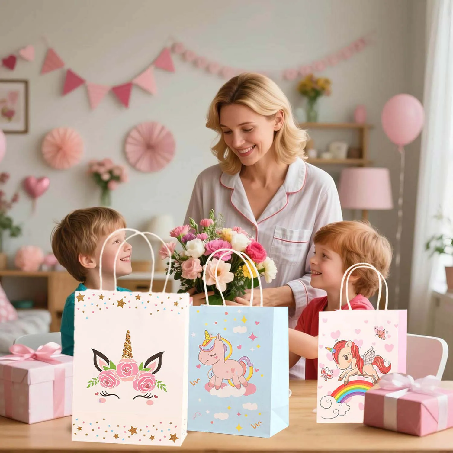 Уникальные дизайны: Подарочный пакет для декора вечеринки Rainbow Horse включает 5 узоров. ручки сумки для украшений на день рождения Rainbow Horse настолько привлекательны и уникальны.